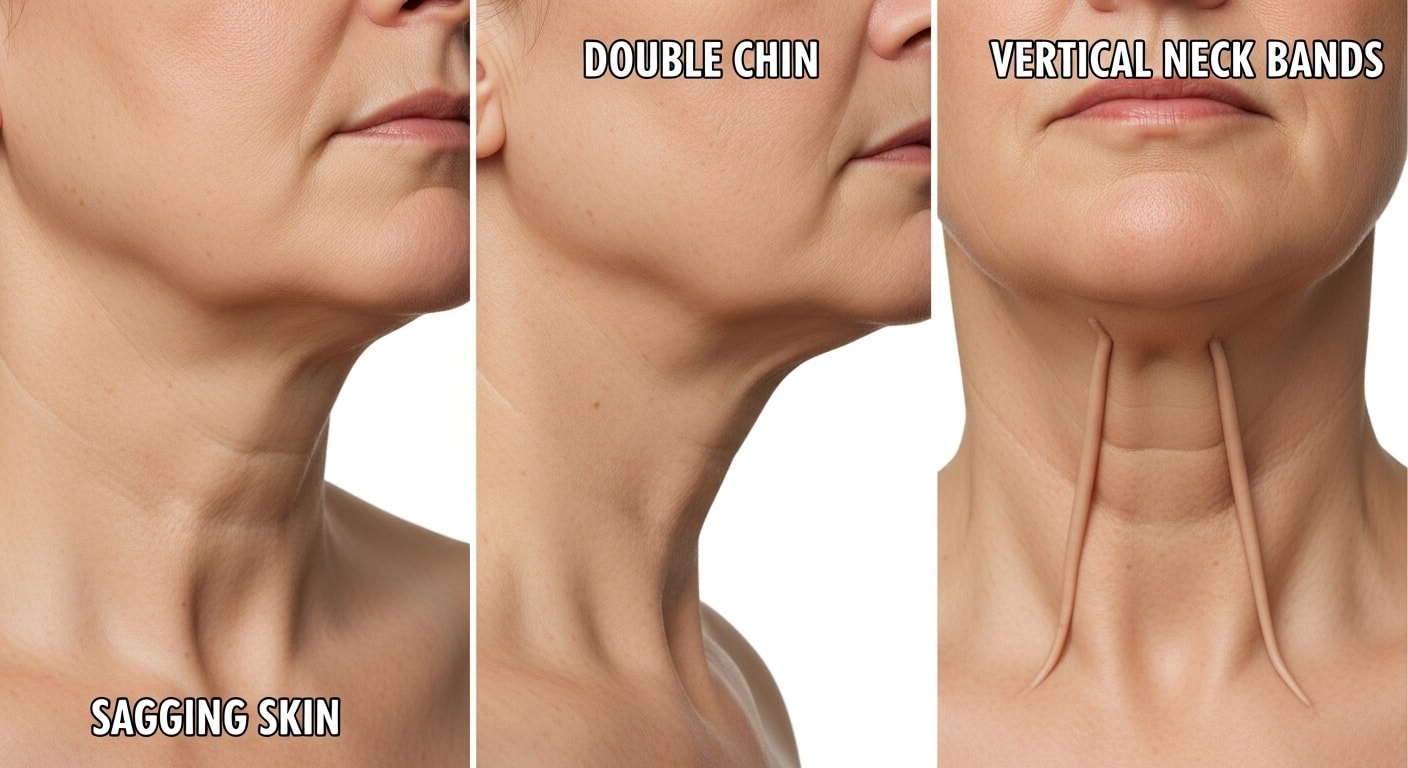 Patients often notice early signs of aging in the neck area before other regions of the face. Common reasons for undergoing a surgical procedure include:
