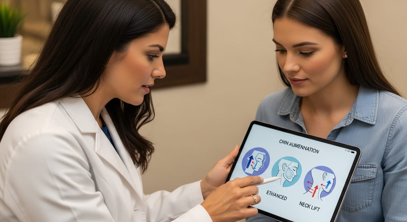 Treatment Plan Discussion: Options may include a facelift procedure, brow lift, or chin augmentation alongside a neck lift for enhanced results.