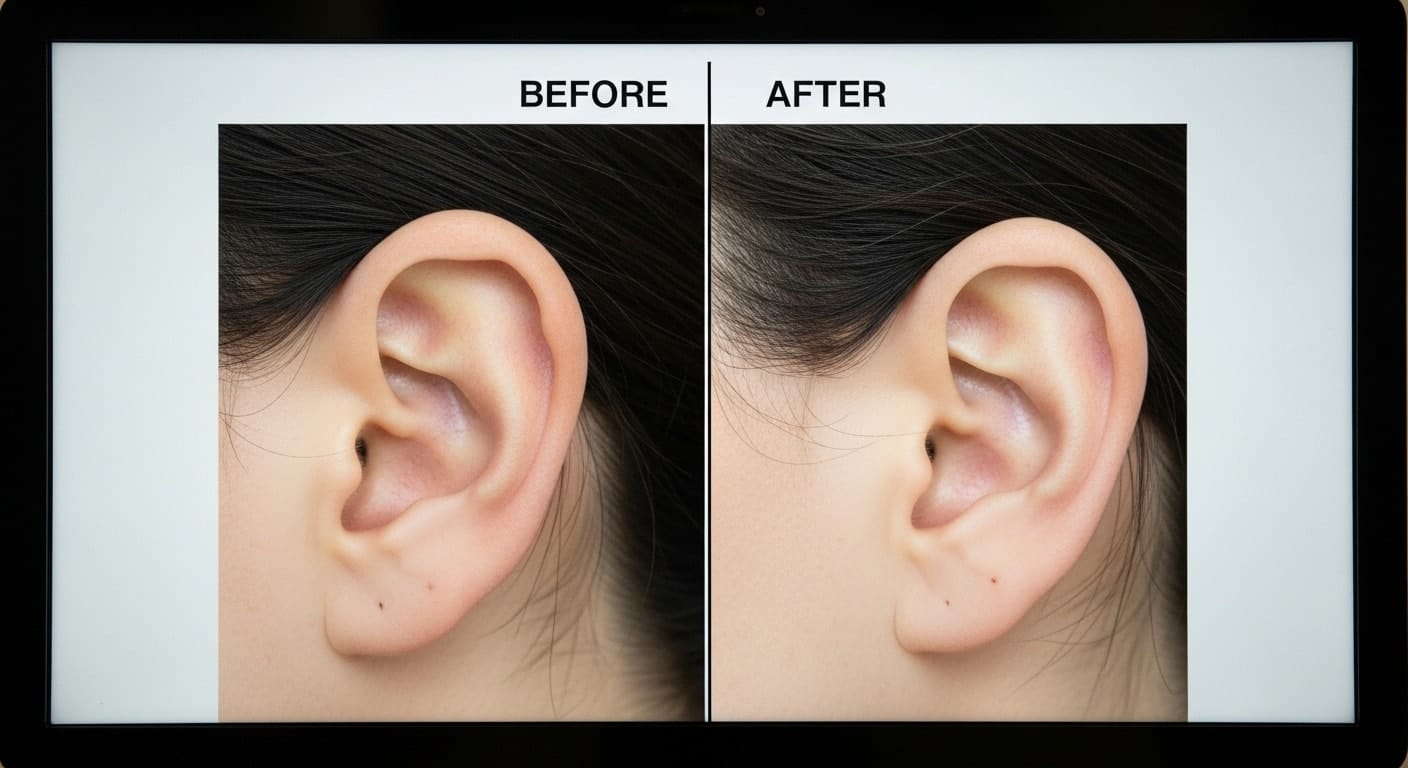 Ear shaping surgery focuses on refining the fold and creating a smooth, balanced shape. It often involves adjusting ear cartilage and addressing excess cartilage for long-lasting results.