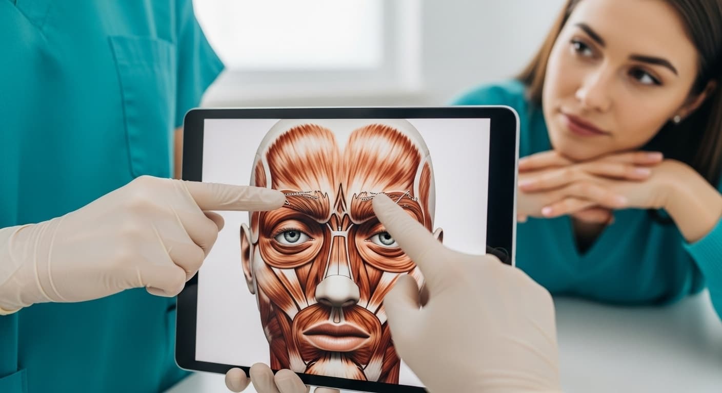 Evaluate your facial anatomy, including eyebrows, forehead, and upper eyelids