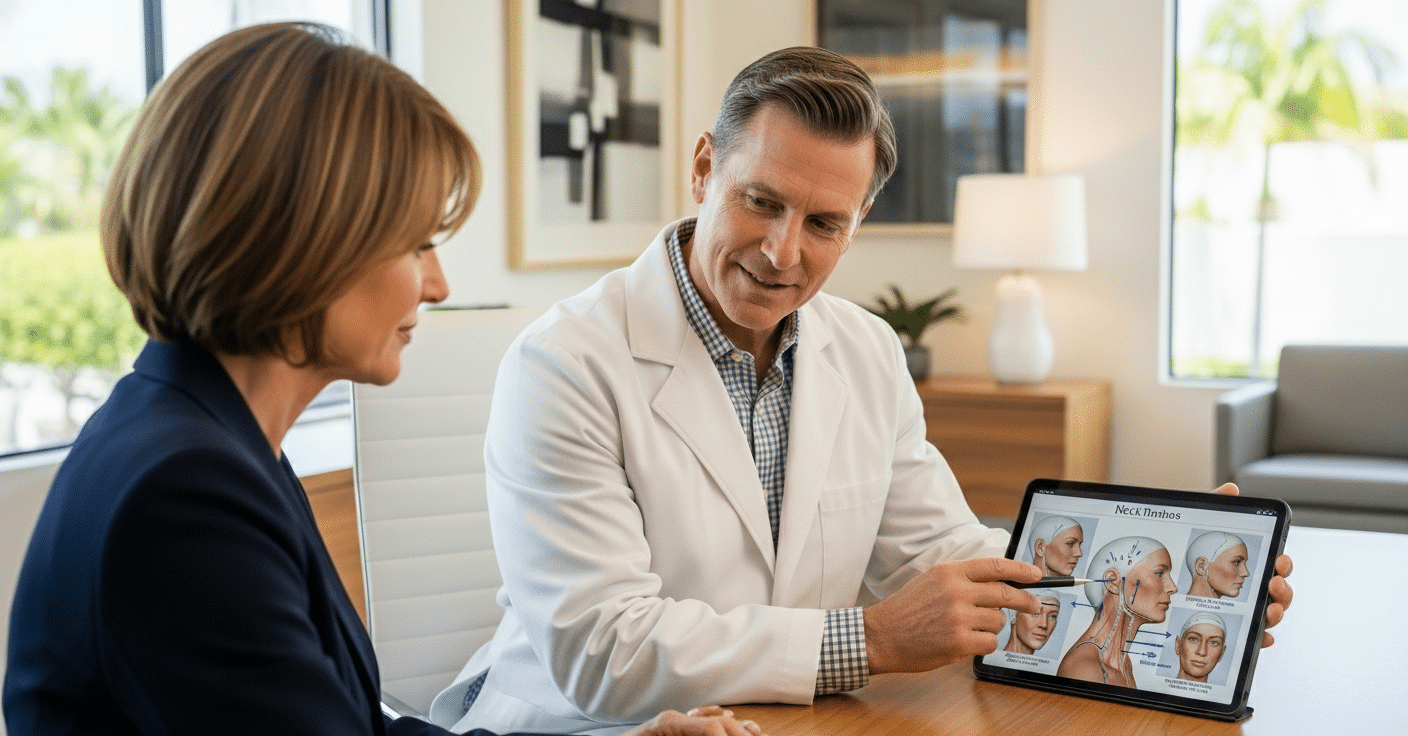 You may be a good candidate for a neck lift procedure if you notice sagging neck skin, a double chin, or muscle laxity in the neck area. Most patients should be in good overall health, have realistic expectations, and be willing to follow the recovery process carefully.